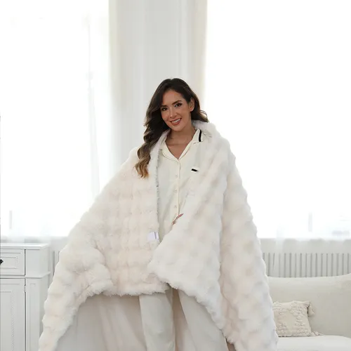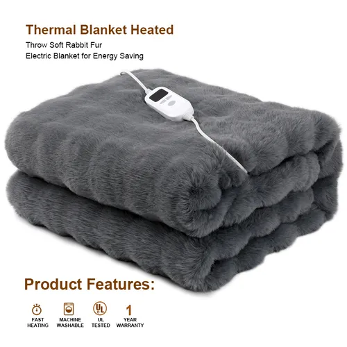 Wykonane z niesamowicie miękkiego sztucznego futra królika,Elektryczny koc do rzucania faux Rabbit FurZapewnia wyjątkowy komfort. Kontroler LCD oferuje sześć konfigurowalnych ustawień ciepła i wszechstronny zegar 1-9 godzin do spersonalizowanego użytkowania. Jego zaawansowany system ogrzewania z włókna węglowego zapewnia wydajną, równomierną dystrybucję ciepła, uzupełnioną niezawodną ochroną przed przegrza niem.